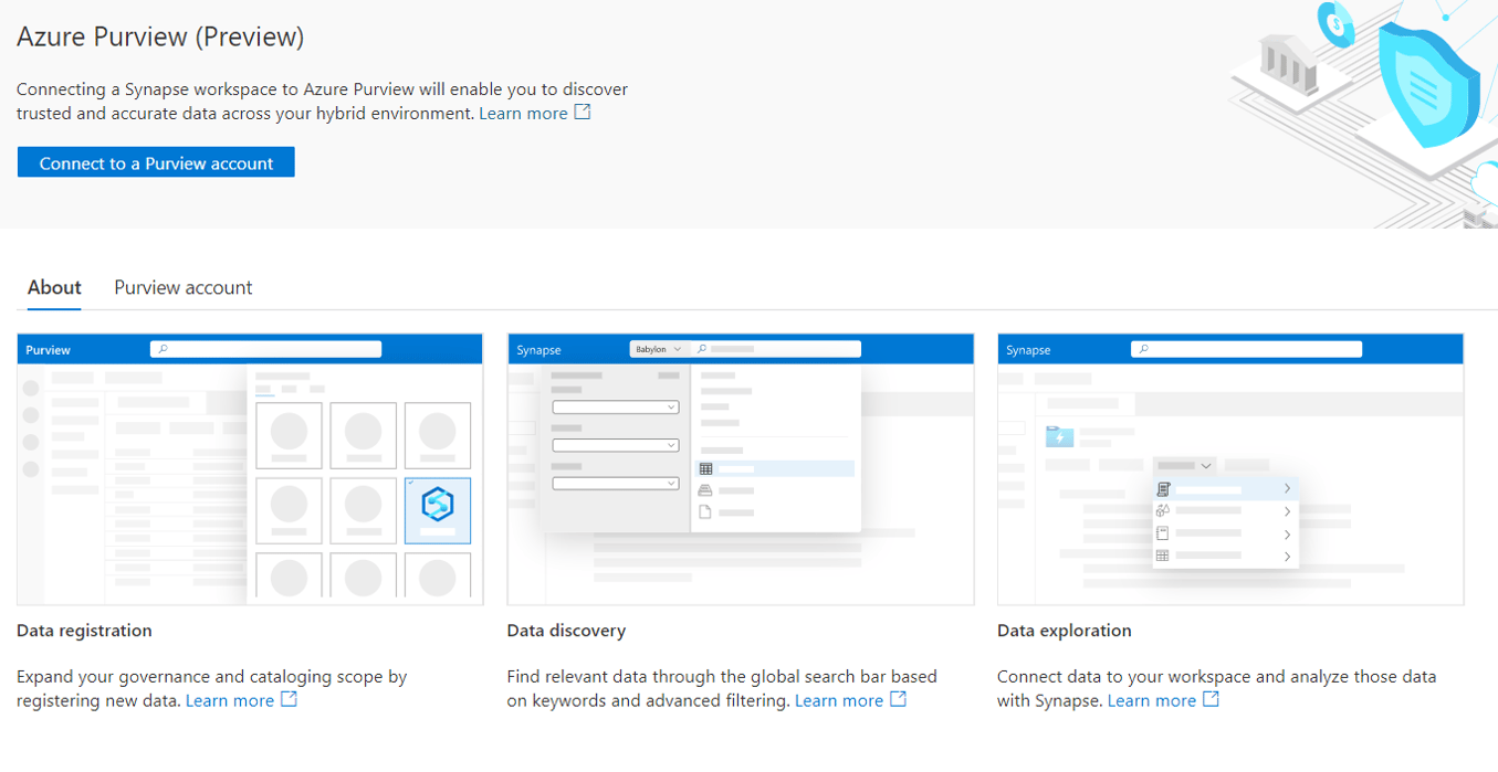 The Synapse workspace now has the option of connecting to a Purview account so that all your Synapse tables are crawled by Purview and thus added to your living data catalog.