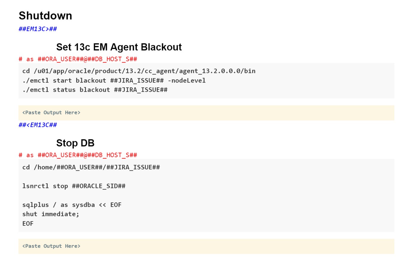 ##ORA_USER##,##DB_HOST_S##, and##JIRA_ISSUE##. These placeholder variables are replaced with real values from the "Action Plan Generator - Variables" document when the final action plan is generated. - Toggles -