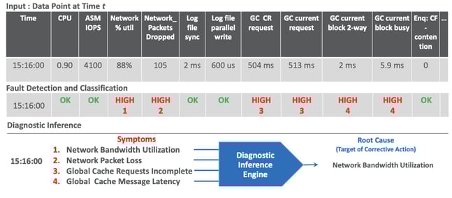 An example of inference can be seen below, where network and global cache statistics are used to inference a network issue.