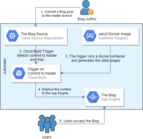 For the purposes of this demonstration, I'll store the blog's code in GCP Source Repositories. Technically, Github would work too, but later I would be required to grant access privileges to all my repositories to GCP Cloud Builder to automate the deployment of the new blog posts. In my case, I have a few private GitHub repositories which I don't want to grant this access to, so I use the GCP Source Repository. Let's create the repository and commit our code to it! This requires several steps:- Create a GCP Project, or use an existing project. In my case the name of the project is