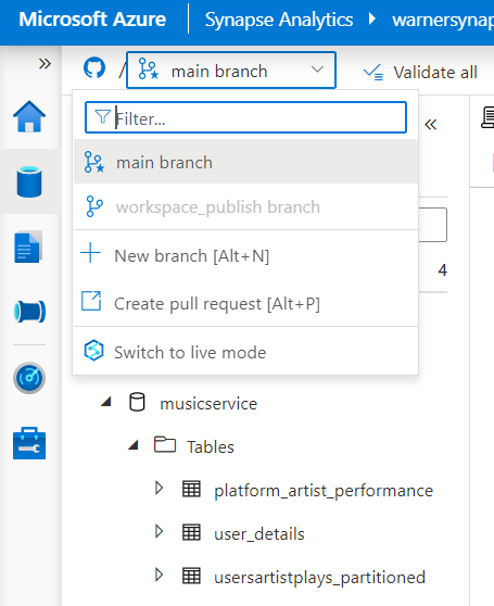 One aspect of Synapse that absolutely stands out is the tight integration with source control and CI/CD capabilities. You have a choice of linking your Synapse code artifacts to either Azure DevOps or GitHub. Once integrated, the Synapse graphical interface allows direct access to committing changes, creating new branches and pulling requests straight from the workspace.