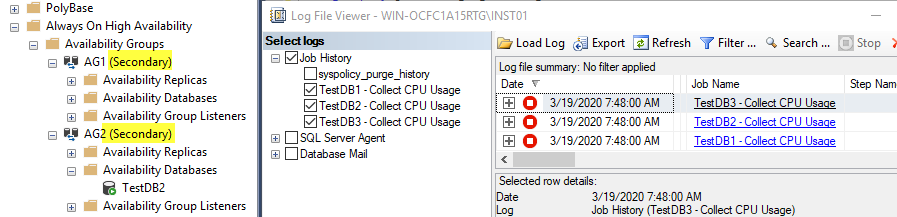 Script Output: An example of the step added to each job:   Examples of job executions in different Availability Group scenarios:           Note: If the job owner user is not part of the SQL Server sysadmin role, you need to assign the following permissions.