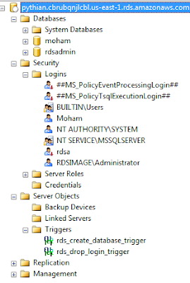 – Triggers [rds_drop_login_trigger] runs for DROP_LOGIN event to ensure no special logins are dropped.