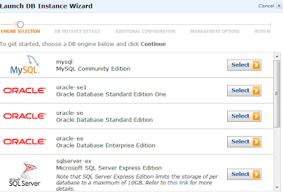 Creating the instance is a matter of a few clicks with few configurations. Here you choose your RDS engine; there are entries for SQL STD , WEB, and ENT editions too.