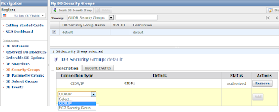 Now the instance is up and running. But before connecting to the instance , we’ll need to authorize access to the instance (compare that to configuring protocols and remote access to on-premise instance). I allowed IP ranges using Classless Inter-Domain Routing option.
