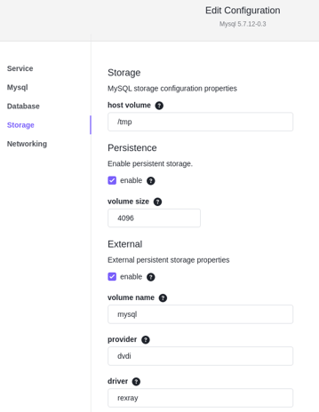 In the service configuration, we will make the data volume “persistent” and “external”.