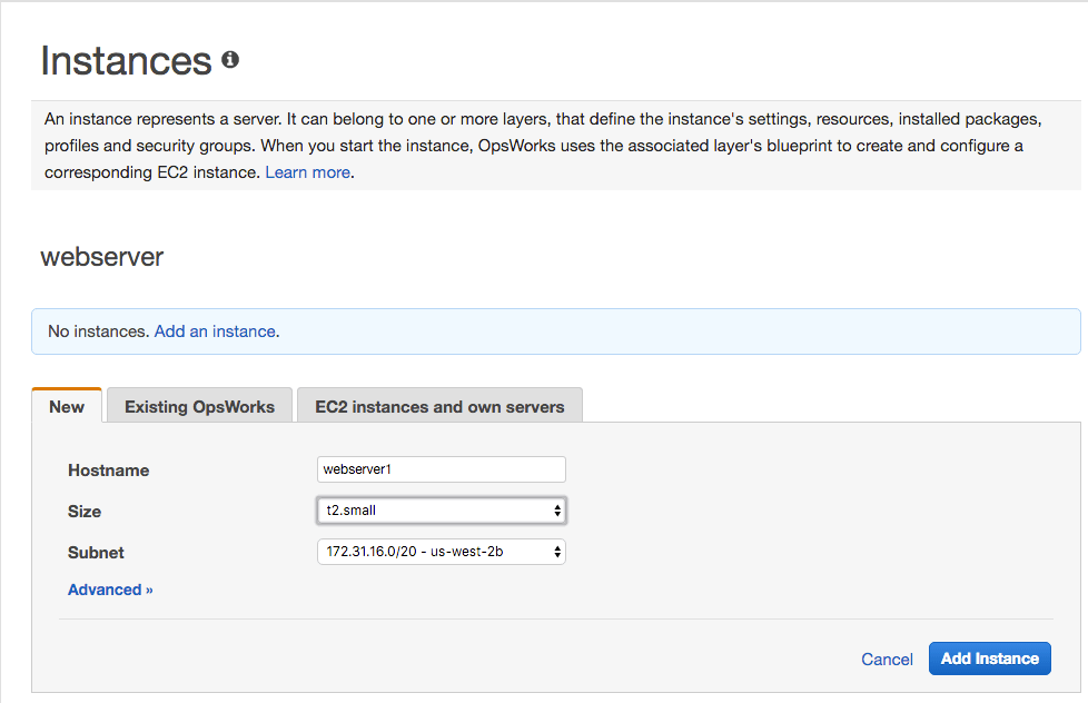 - Click on "Add instance"