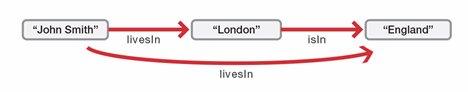The OWL specification provides “predicate” properties which allow OWL “reasoners” to make inferences. Below we can infer that John Smith lives in England. There is no database entry that explicitly says that John lives in England, and unless that relationship is structured into the schema and query with forethought, that result could never be returned by a SQL query. Inference is all about discovery.