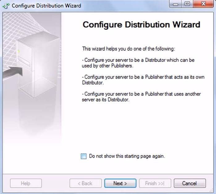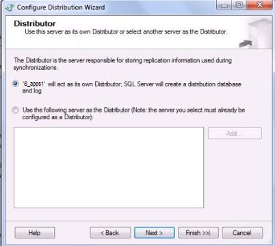 3. On the next page, keep the default option (Server will act as its own distributor) on, and press Next button. Refer Figure 4 below.Figure 4: ConfigDistributor_Step3