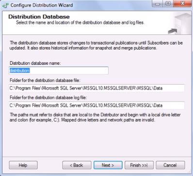 5. On the next screen, specify the details for distribution database, as shown in Figure 6.Figure 6: ConfigDistributor_Step5