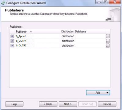 2. Add S_OLTP1 and S_OLTP2 as publishers on Distributor.