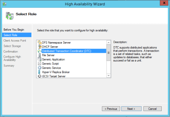 - Choose the option "Distributed Transaction Coordinator (DTC)" from the list. Click "Next".