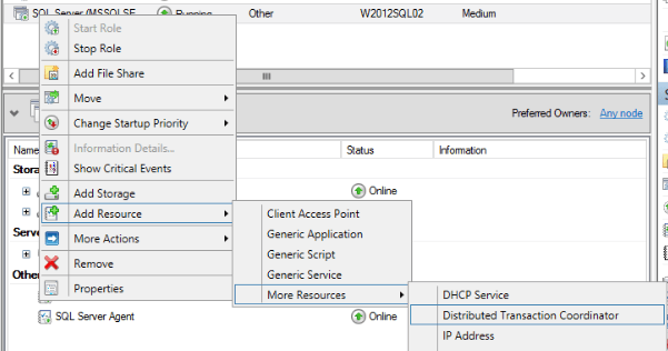 - Right-click the Role, go to "Add Resource"->"More Resources" -> "Distributed Transaction Coordinator".