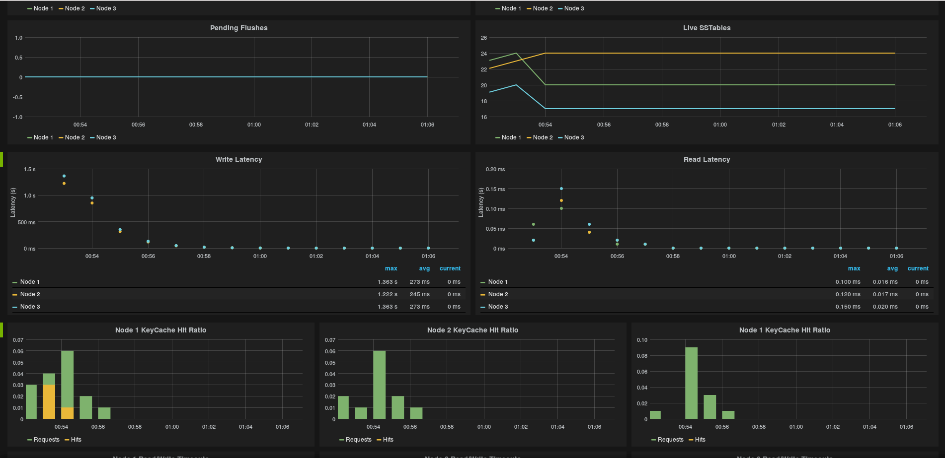 Grafana is not that difficult to use, so once you start exploring a bit (And reading the documentation) you will find out doing nice graphs. This could be a long post only about graphing out, so I'm just go and post some images of the graphs I'm getting out of Grafana so that you can see how it can be powerful and help you on keeping your Cassandra Healthy.
