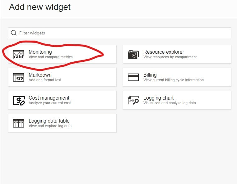 Oracle gives us a default dashboard that gives a bird eye view of OCI infrastructure with a combination of widget that Oracle feel would be good to start with.