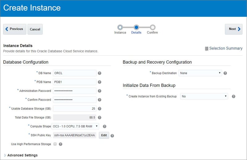 Creating a Non-CDB instance in the Oracle Cloud Infrastructure (OCI)