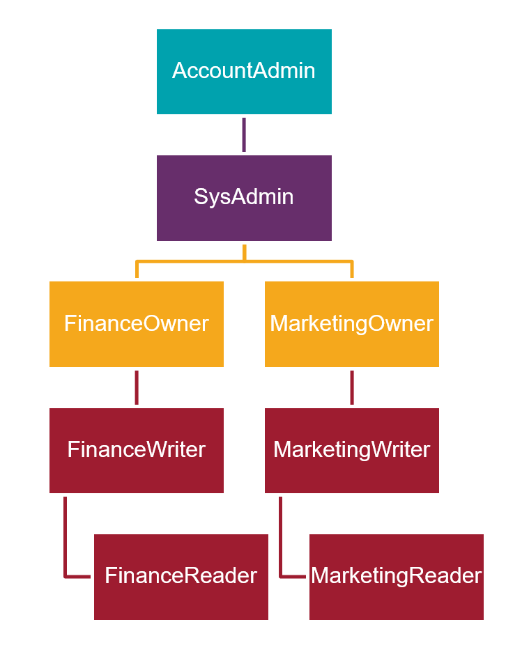 Snowflake supports role-based authorization similar to many other database systems. However, by default it only comes pre-populated with a few account level roles (account admin, sysadmin, security admin, etc.), leaving it up to you to create the right role hierarchy for your organization's requirements. There are two interesting things about role implementation: one is that roles own the objects and second, roles can be nested with other roles. This means you can take a top-down approach to go from ownership, to assigned read / write privileges, to read-only privileges, as a starting point for a given database. Then you assign the roles bottom-up: reader assigned, to read / writer assigned, to owner, and finally all created roles assigned to your sysadmin. This will save you time down the line since the security hierarchy will be easy to manage while at the same time preserving the principle of least privilege. Here's an example of what I mean: