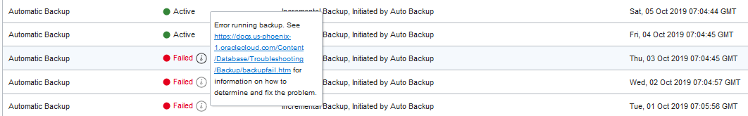 Troubleshooting Oracle Cloud Infrastructure Automatic Backups